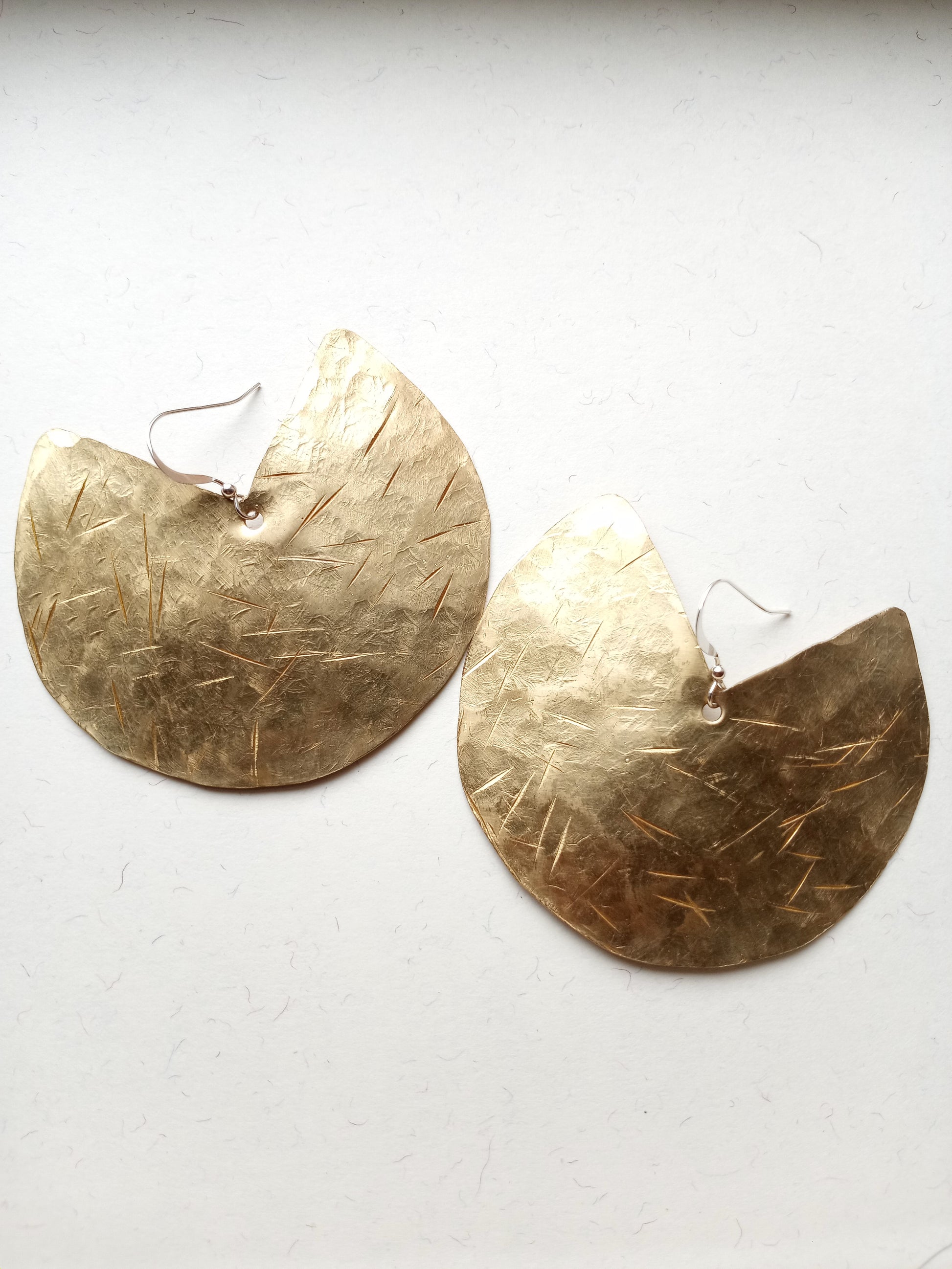 Materials Used- These Unique Statement Brass Earrings are Hand cut, and hammered in a detailed and strong design to give the most powerful look.